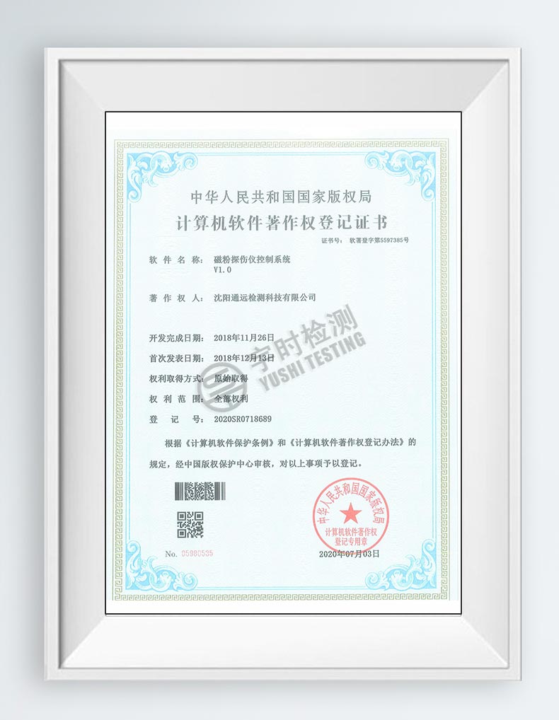 磁粉探傷儀控制系統(tǒng)軟件著作權(quán)證書
