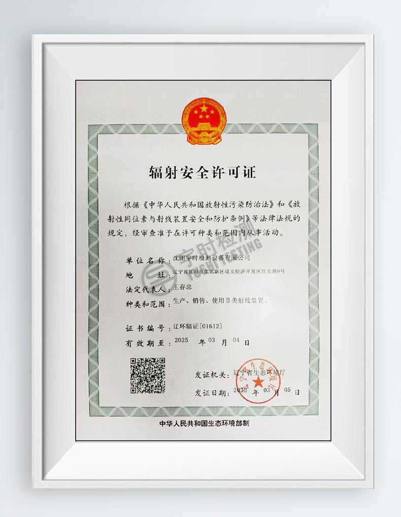 宇時(shí)檢測輻射安全許可證